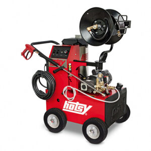 Hotsy’s reliable stationary, electric-powered, cold water pressure washer featuring a Hotsy belt-drive, triplex pump with 7-year warranty, insulated variable pressure wand and ETL safety certification. 2 HP motor delivers cleaning power of 1000 PSI at 2.8 GPM. Equipped with a 50′ hose.
